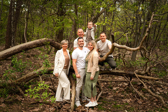 Geen stijve familiefoto's in een studio voor mij. Echt niet! Ik vind het veel leuker om te werken met een unieke omgeving. Dat maakt het mogelijk om spontane foto's te maken, waarbij zowel ik als fotograaf als jij en je familie gebruik kunnen maken van de omgeving. Dat zorgt in mijn ervaring vaak ook voor een stukje 'lachen, gieren, brullen', maar juist met die ontspannenheid krijg je de leukste foto's. Dus even over die locaties... Voor groepen is het altijd leuk om een dynamische omgeving te kiezen, zoals in Tilburg in de Spoorzone of net achter het station. Maar dat soort plekjes kan ik natuurlijk ook vinden in een stad als Den Bosch. Daarnaast blijft fotograferen in de bossen en de natuur een van mijn favorieten. Juist omdat daar altijd wel die ene boom, dat ene paadje of die ene zonnestraal te vinden is die perfect bij jouw familie past. We kiezen natuurlijk de locatie samen, maar weet dat ik in ieder geval flexibel ben om te reizen in Midden-Brabant.